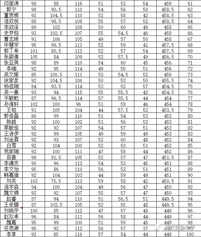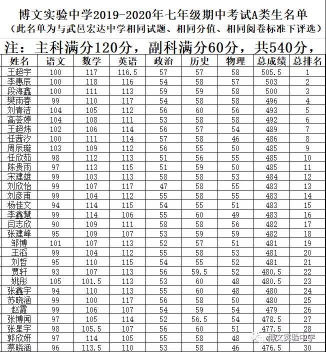 博文实验中学2019-2020年2019-2020年七年级期中考试A类生名单